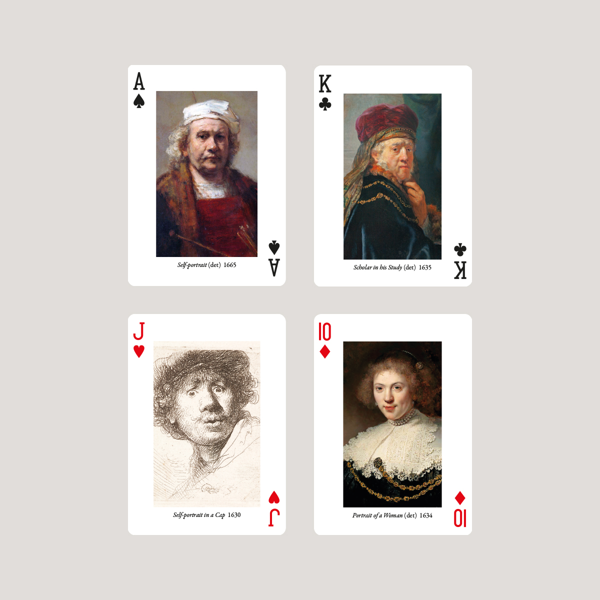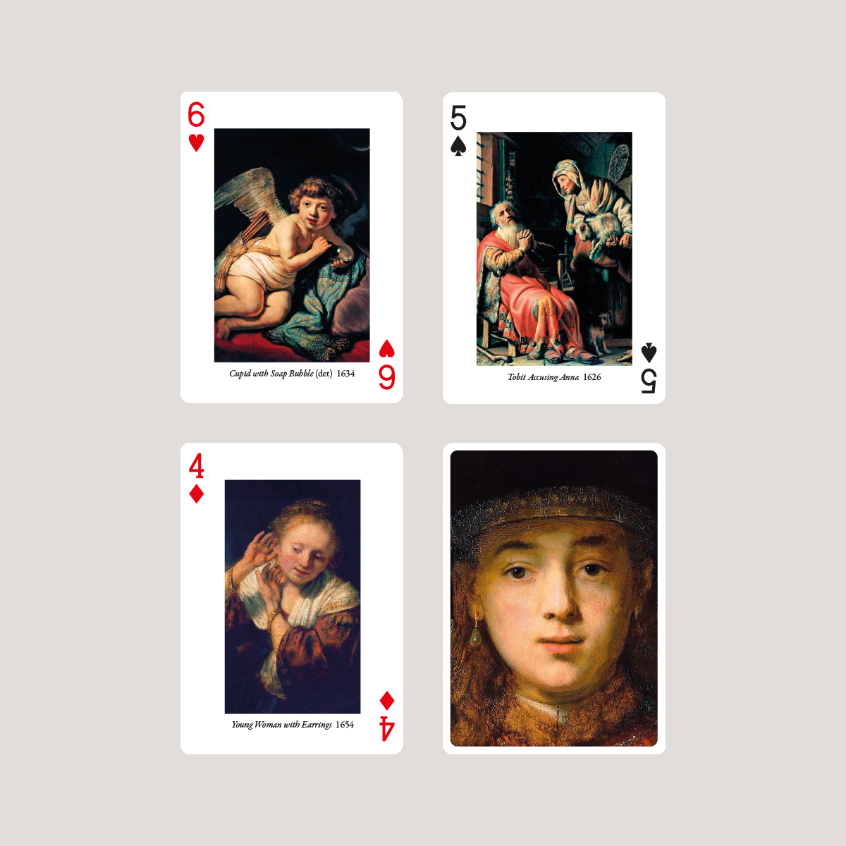 These playing cards bring together Rembrandt’s portraits, etchings, and studies of light and character into a tactile collectible form, where each card reflects his mastery of observation and atmosphere.