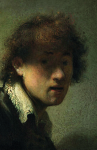 Rembrandt Harmenszoon van Rijn (1606-1669) was born in Leiden, the ninth child of a miller. After flirting with academic life at the University of Leiden, he left to study painting but, unusually for such an avid learner, never travelled to Italy to learn from Renaissance masters; he knew them only from prints. By 1632 he had established a successful studio in Amsterdam, and was lauded for his history and biblical paintings, for his ability to convey feeling through gesture, through dramatic contrasts of light and dark (influenced by Caravaggio). His early style is precise, meticulous. His later paintings use broad brushstrokes, sometimes impasto applied with a palette knife. He described faces with patterns of light and shadow, rather than a single light source. Nowhere is his genius  more evident than in his self-portraits, studies in introspection. ‘Life etches itself onto our faces as we grow older, showing our violence, excesses or kindnesses.’ There are about 100. As Kenneth Clark says – ‘with the possible exception of Van Gogh, Rembrandt is the only artist who made the self-portrait a major means of artistic self-expression, and he is absolutely the one who has turned self-portraiture into an autobiography.’ It is the autobiography of a genius, but a genius with all the flaws of nature.